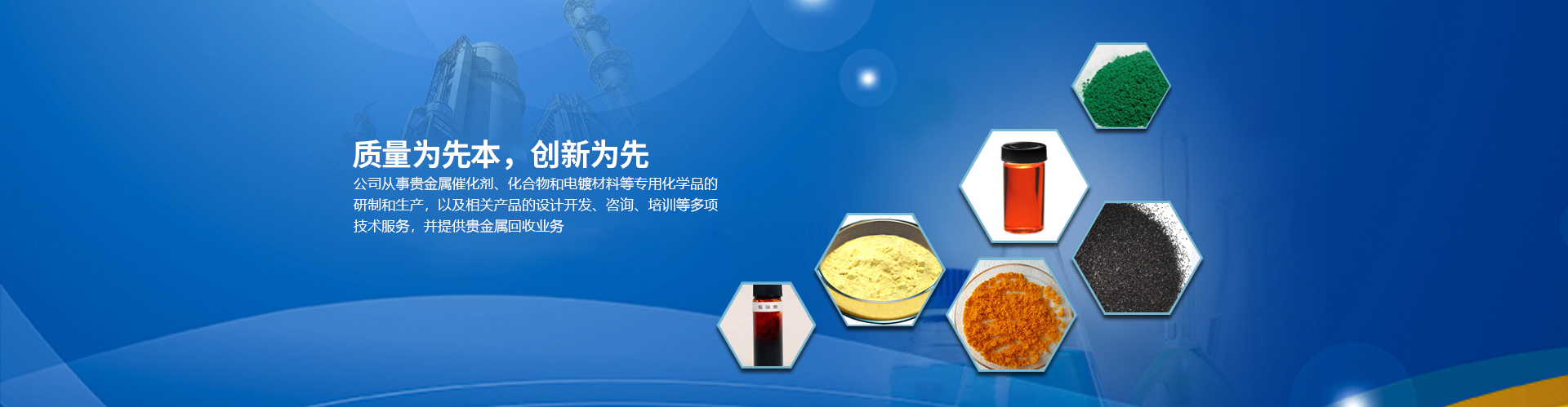 目前公司的主要產(chǎn)品有:醋酸鈀、氯化鈀、硝酸鈀、硫酸鈀、氯鉑酸、反-二(三苯基膦)二氯化鈀、四(三苯基膦)鈀、乙酰丙酮鈀;三氯化銠、辛酸銠、碘化銠、硝酸銠、醋酸銠、三苯基膦氯化銠、三苯基膦乙酰丙酮羰基銠、三苯基膦氯化銠、乙酰丙酮二羰基銠等,廣泛應用于藥物合成、石油化工、精細化工和電鍍領域。本公司對所有產(chǎn)品進行嚴格檢測從定量和定性方面嚴把質(zhì)量關,并通過ISO90001質(zhì)量體系認證。